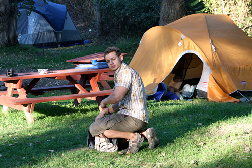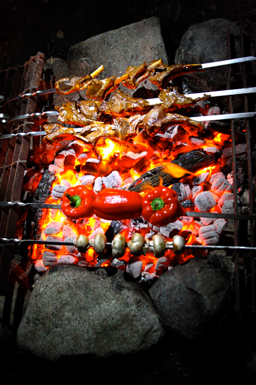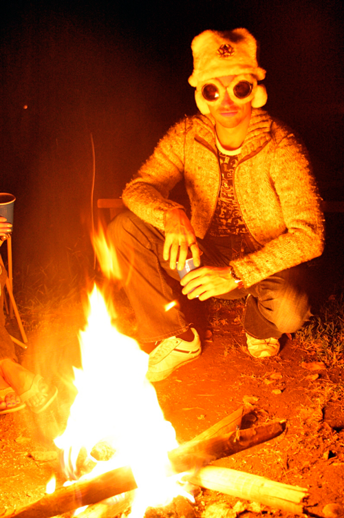 Getting cozy by the fire, waiting rather impatiently for шашлык...